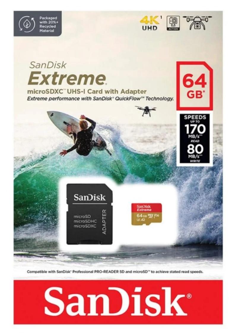 'nome' => 'CARTAO DE MEMORIA MICRO SD 64GB EXTREME 4K UHD ( SDSQXAH-064G-GN6AA ) 170MB/S - SANDISK',